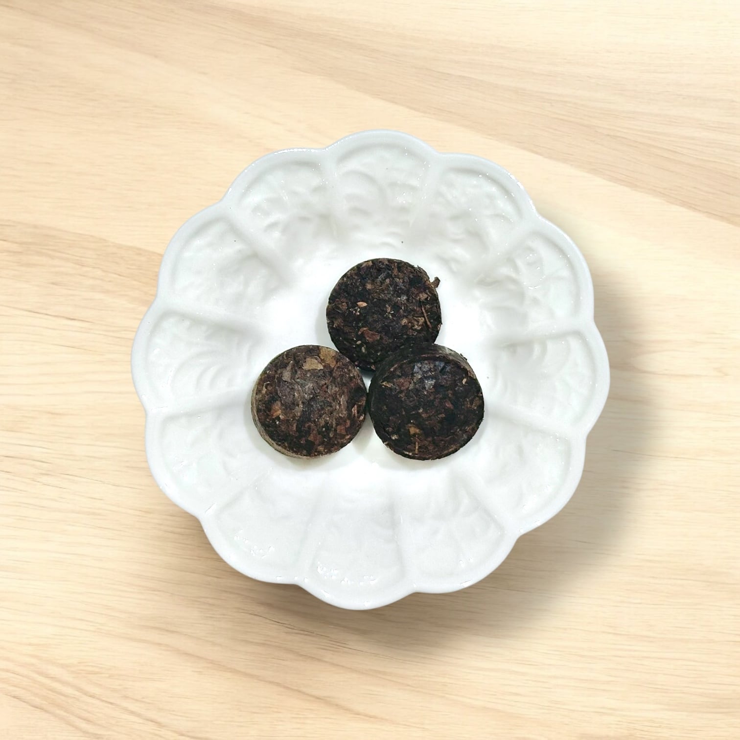 こちらは一つ一つ小さなお椀型に圧縮した固形タイプ(1粒約5~6g)、