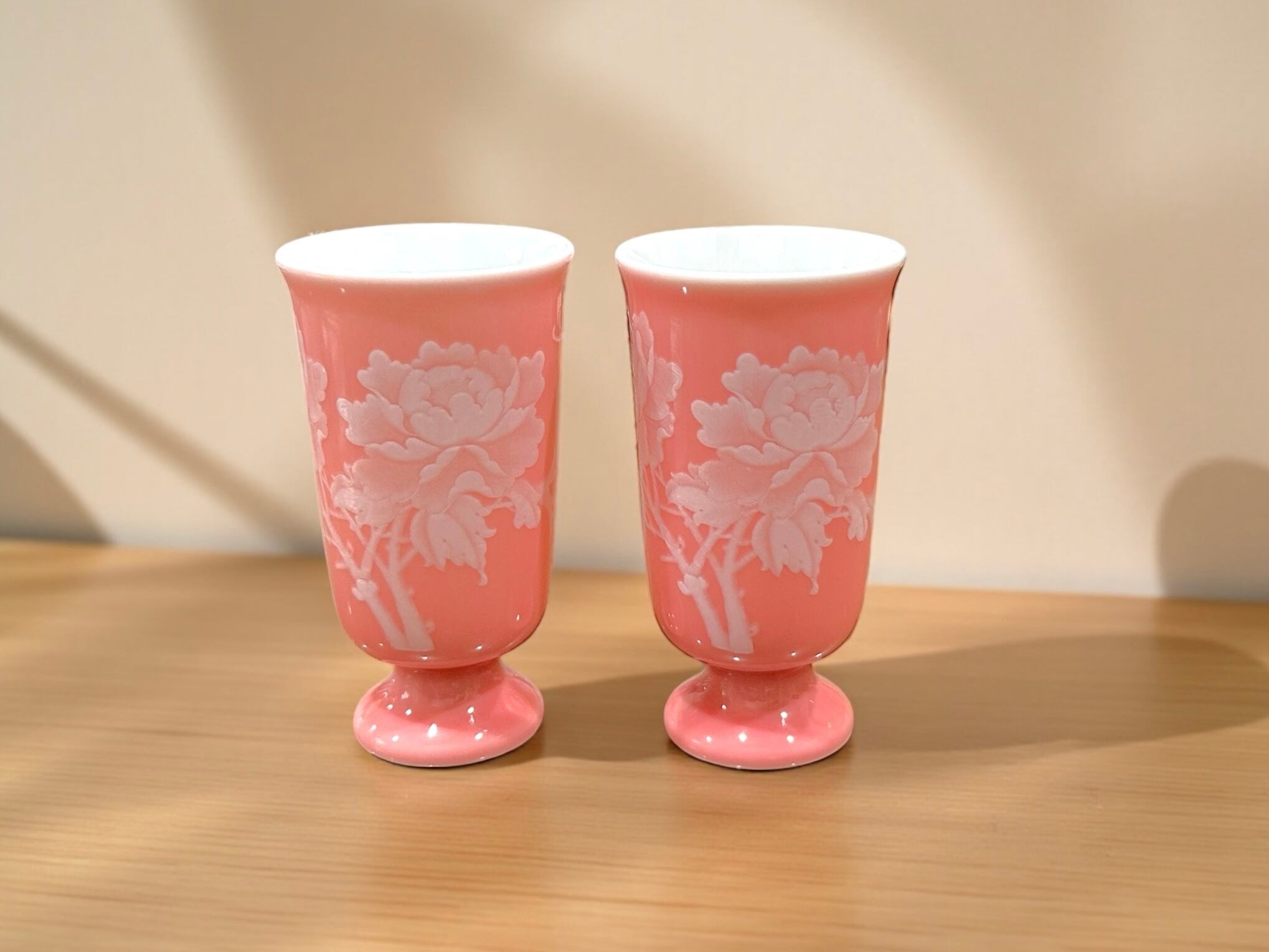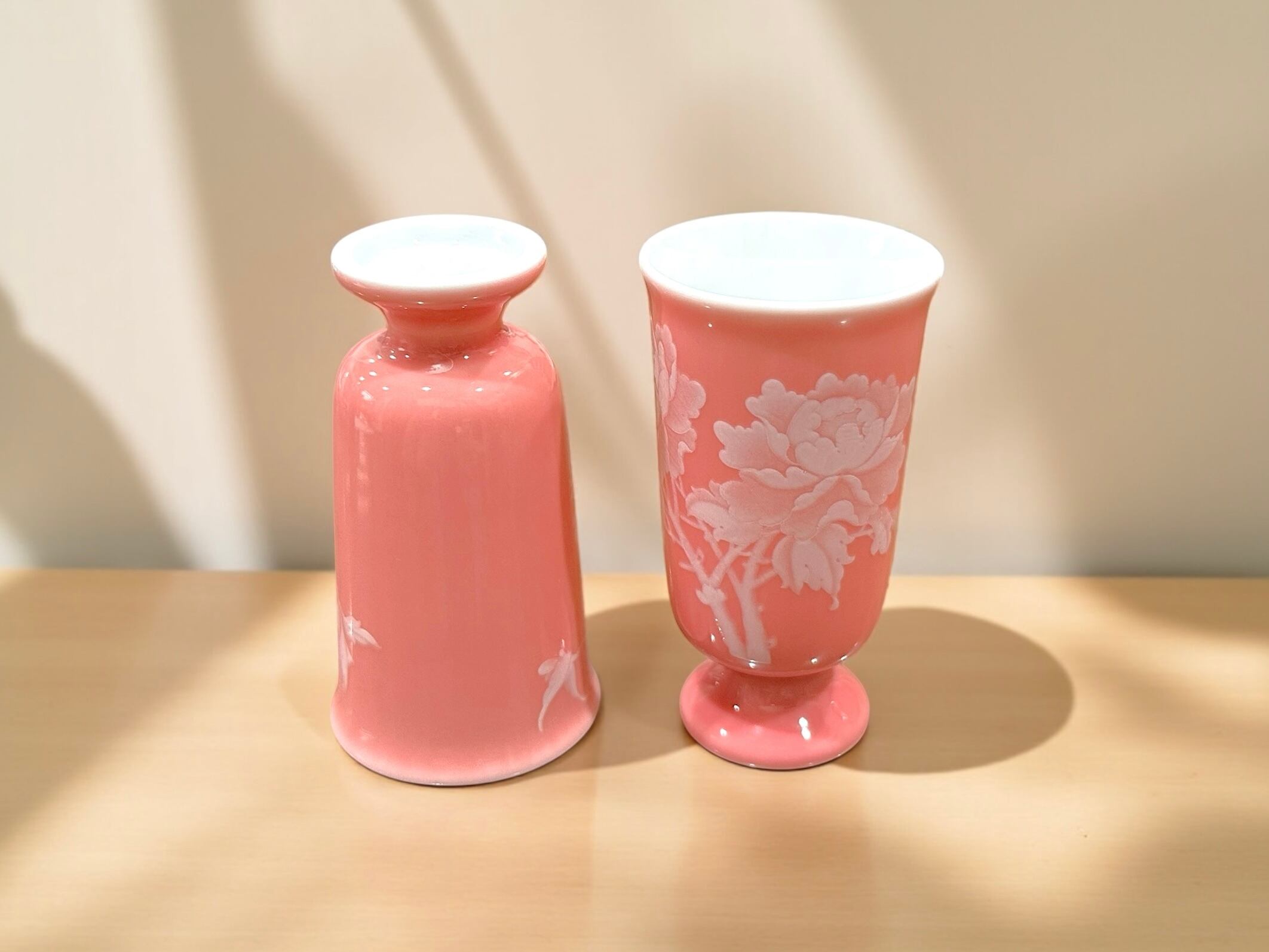 白磁ベースにベビーピンクの釉薬で色鮮やかに仕上げました。