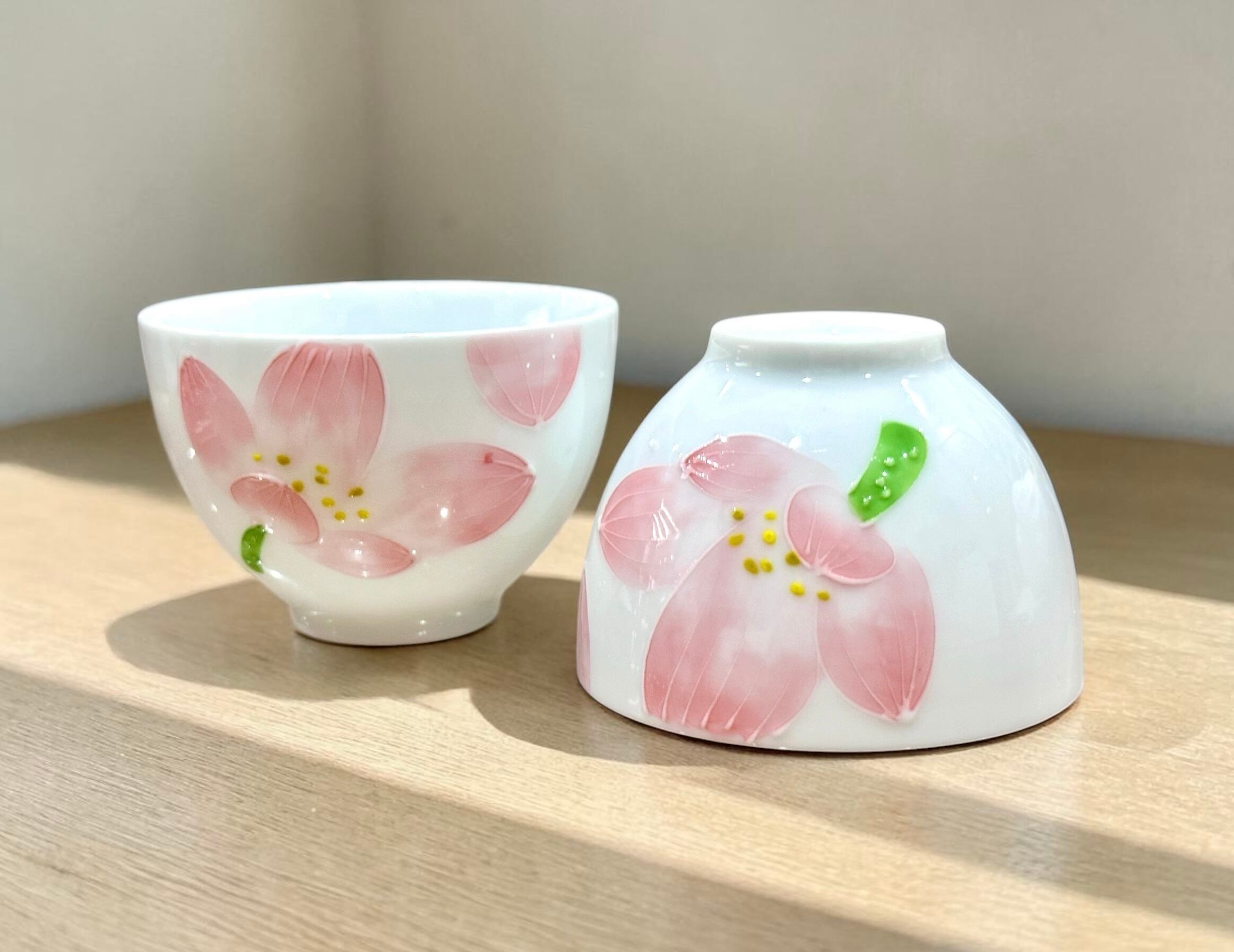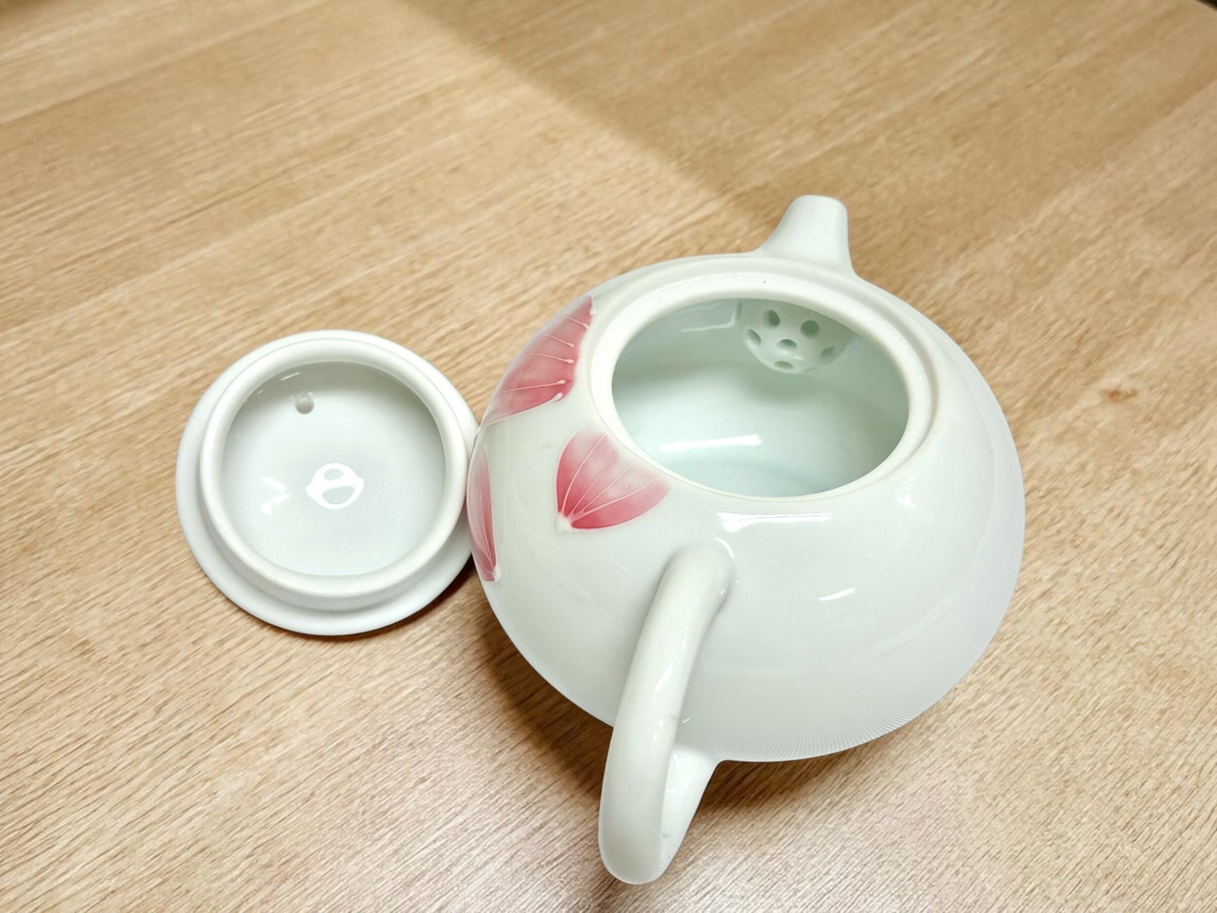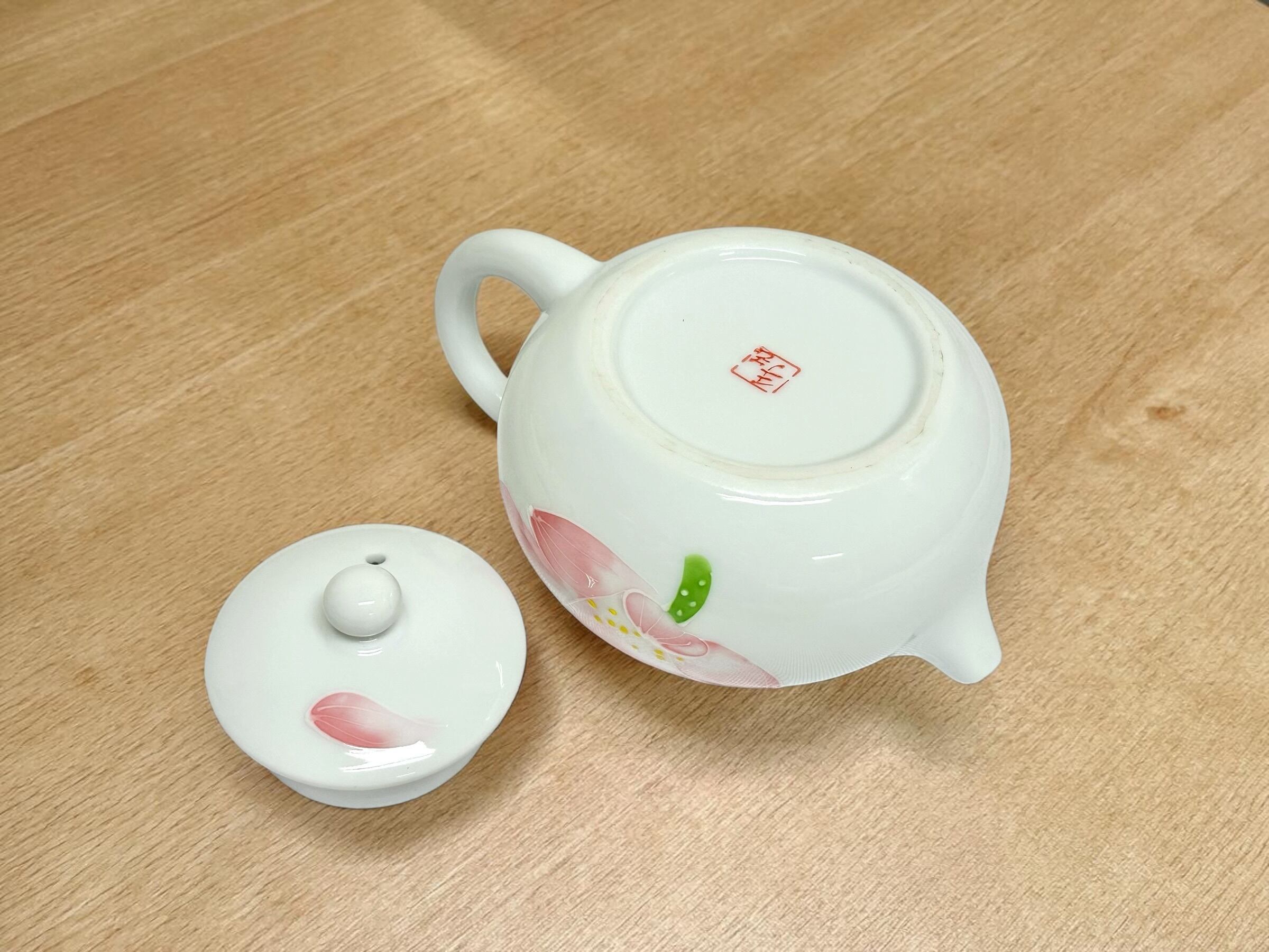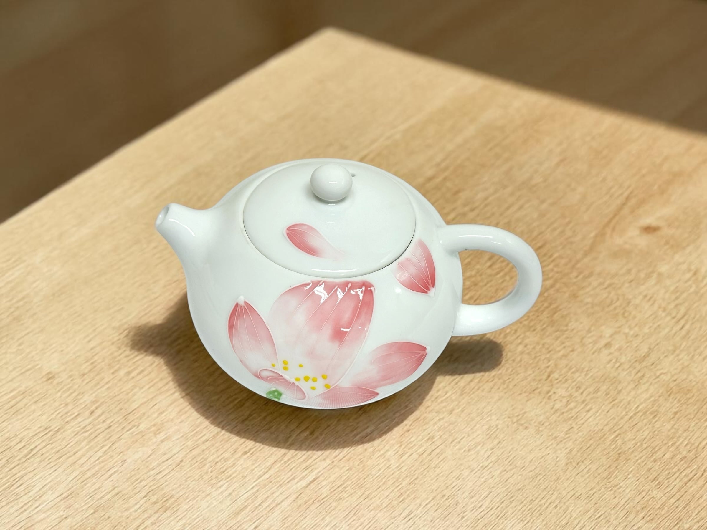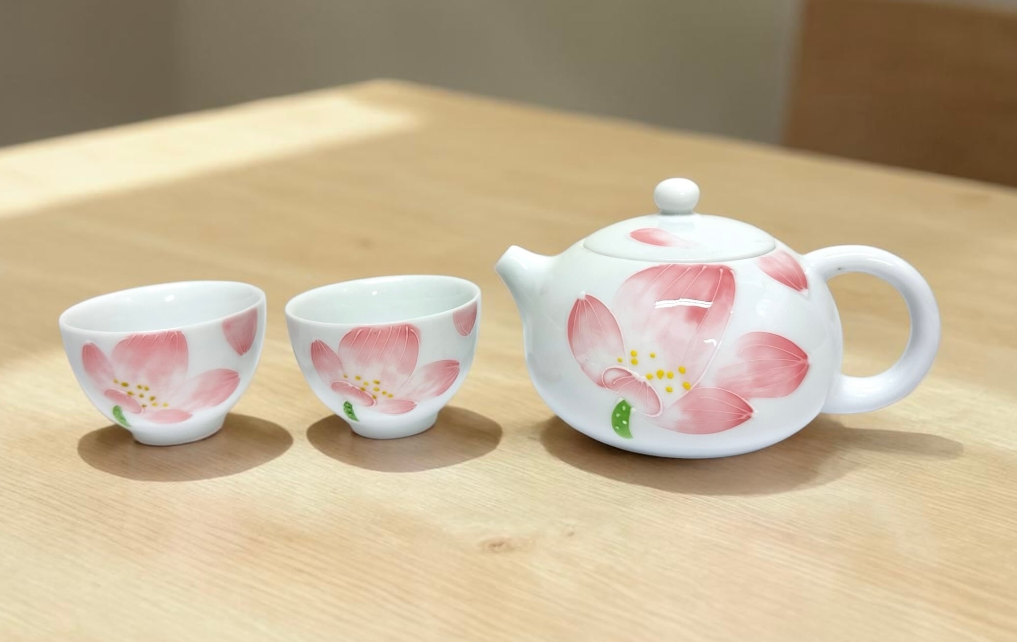 白磁ベースに一つ一つ手描きで描かれた蓮が上品で可愛らしい茶器セットです。