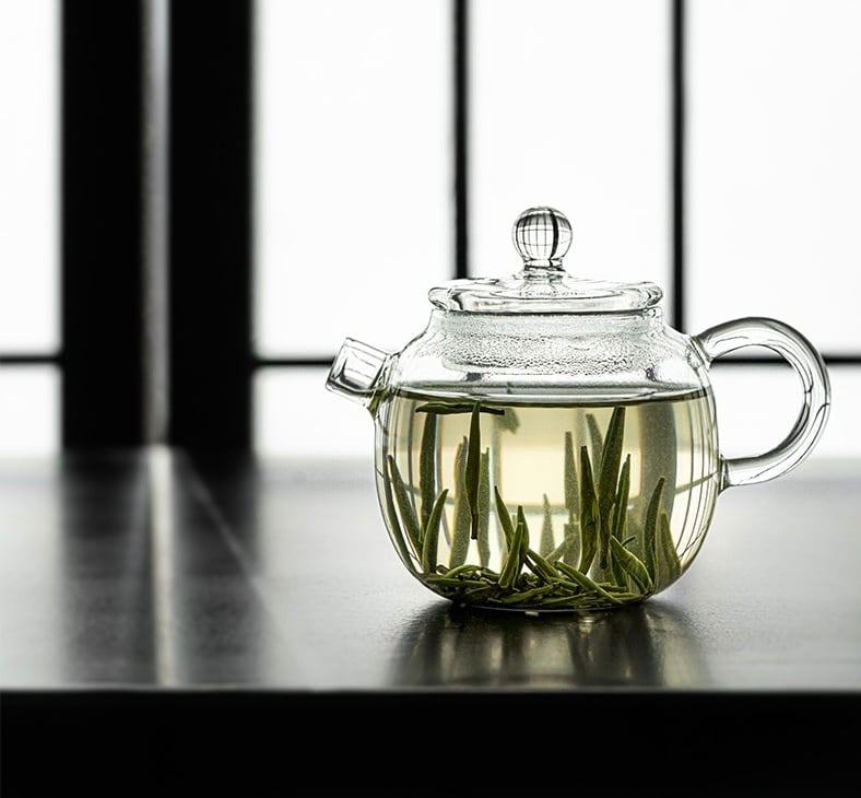 コロンとした丸いフォルムが可愛らしいミニサイズの耐熱ガラス茶壷です。