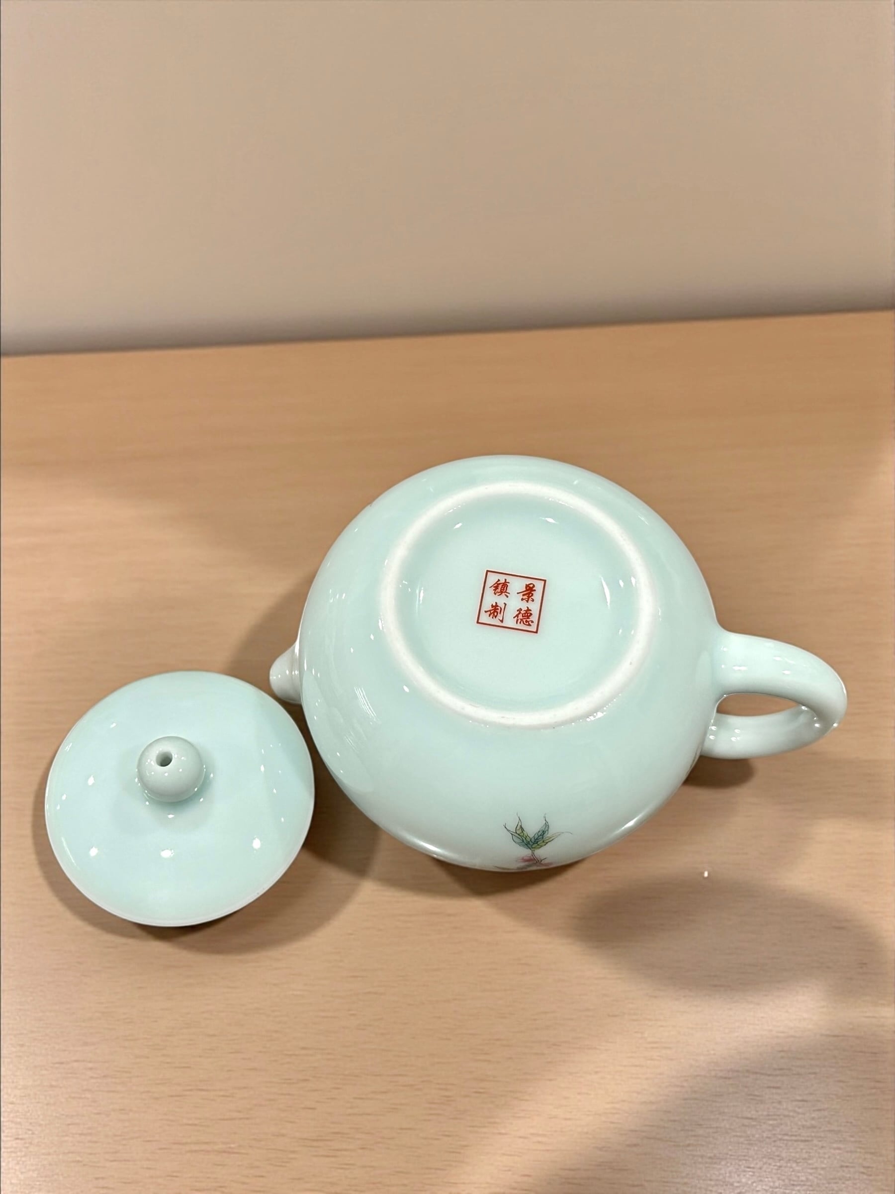 磁器製の淡く上品な青磁色の茶器です。