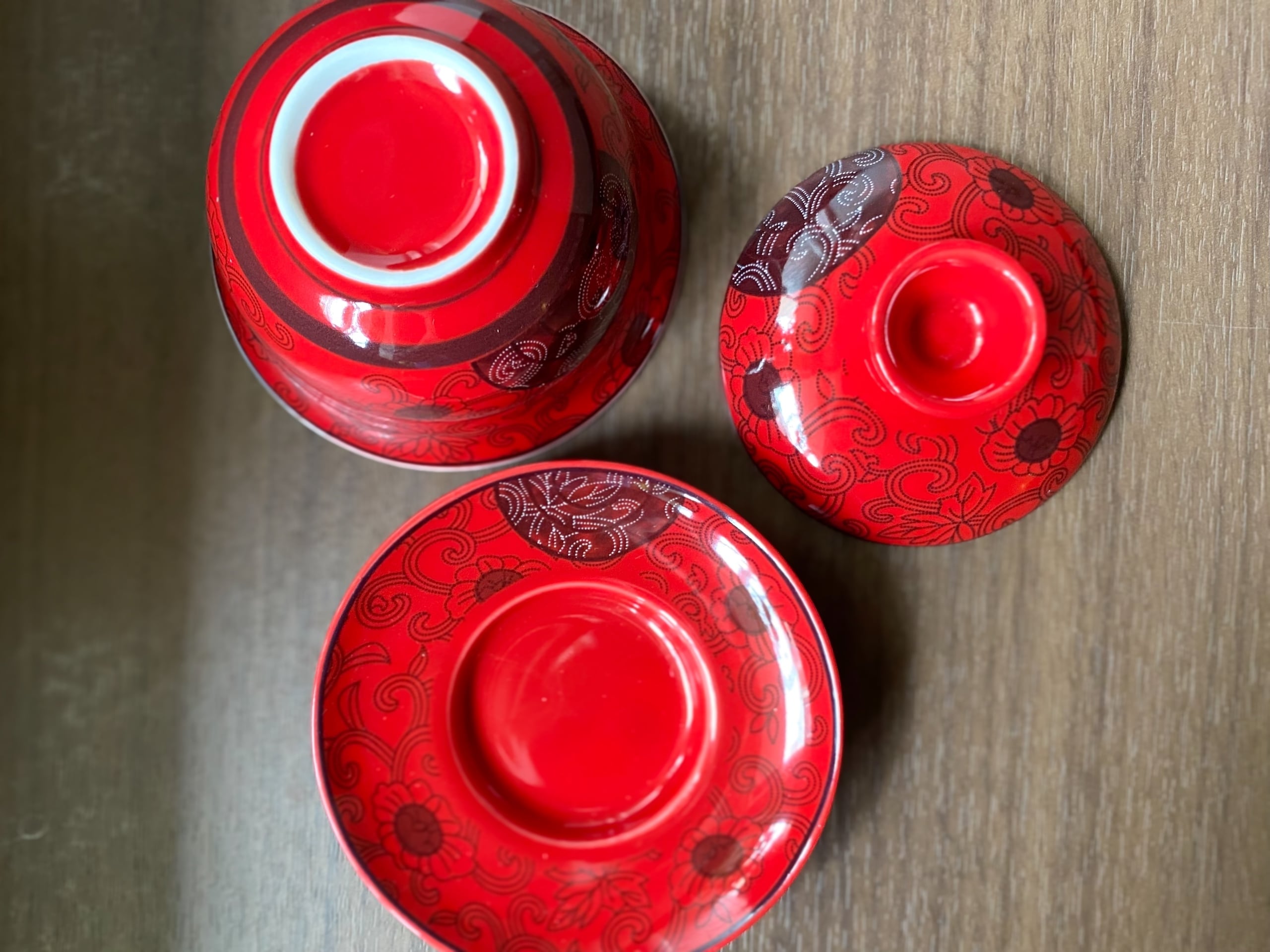 中国、台湾では縁起の良い色として大変人気の高い鮮やかな赤色が美しい茶器です。