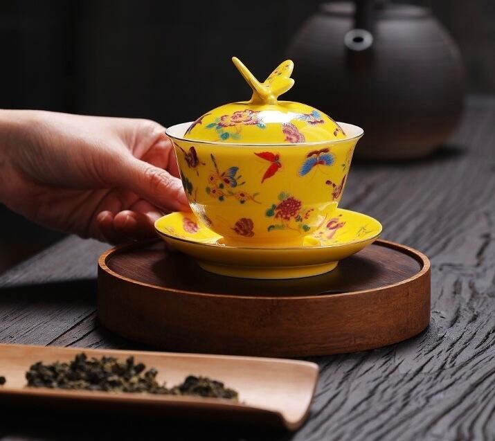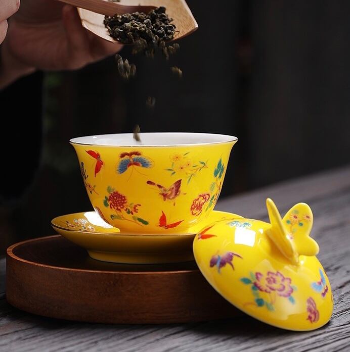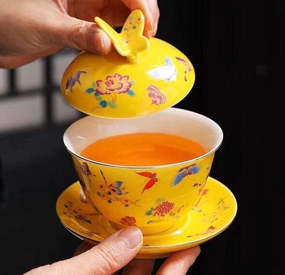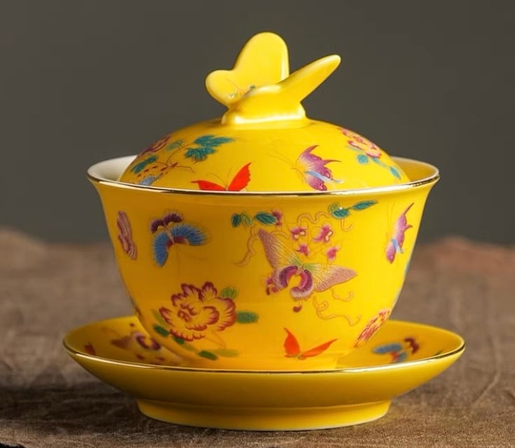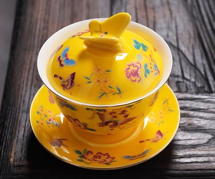 蓋の摘み部分が蝶の形にデザインされた珍しい蓋碗です。