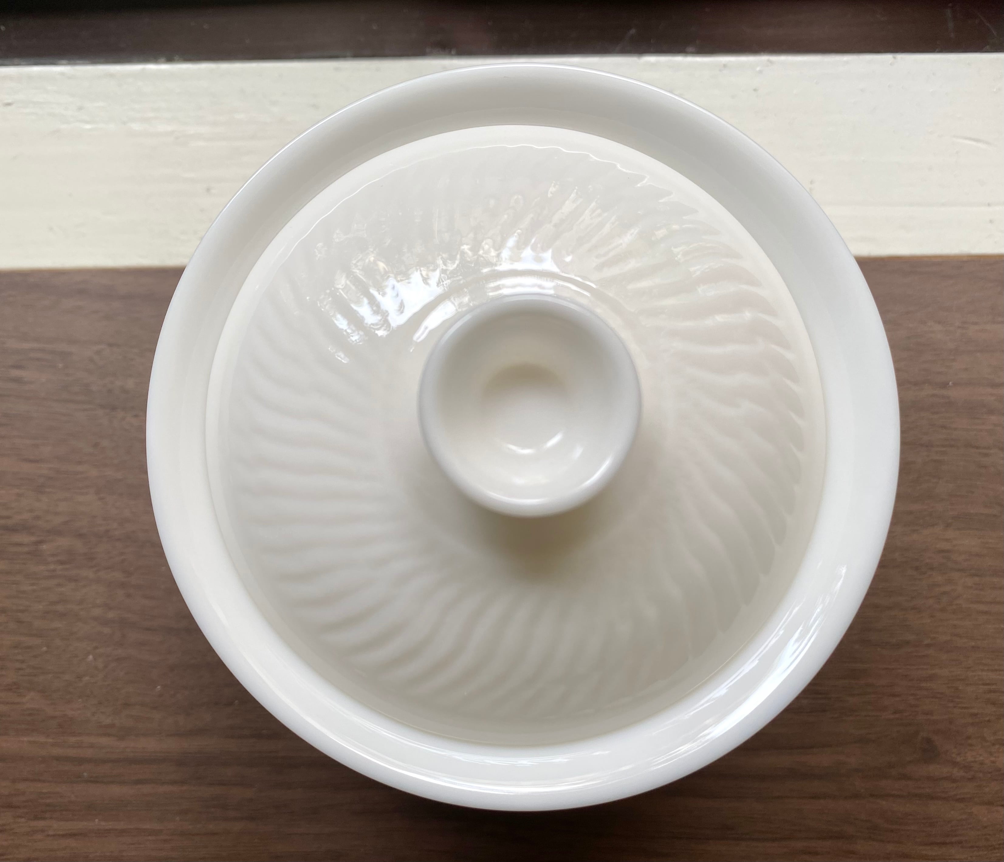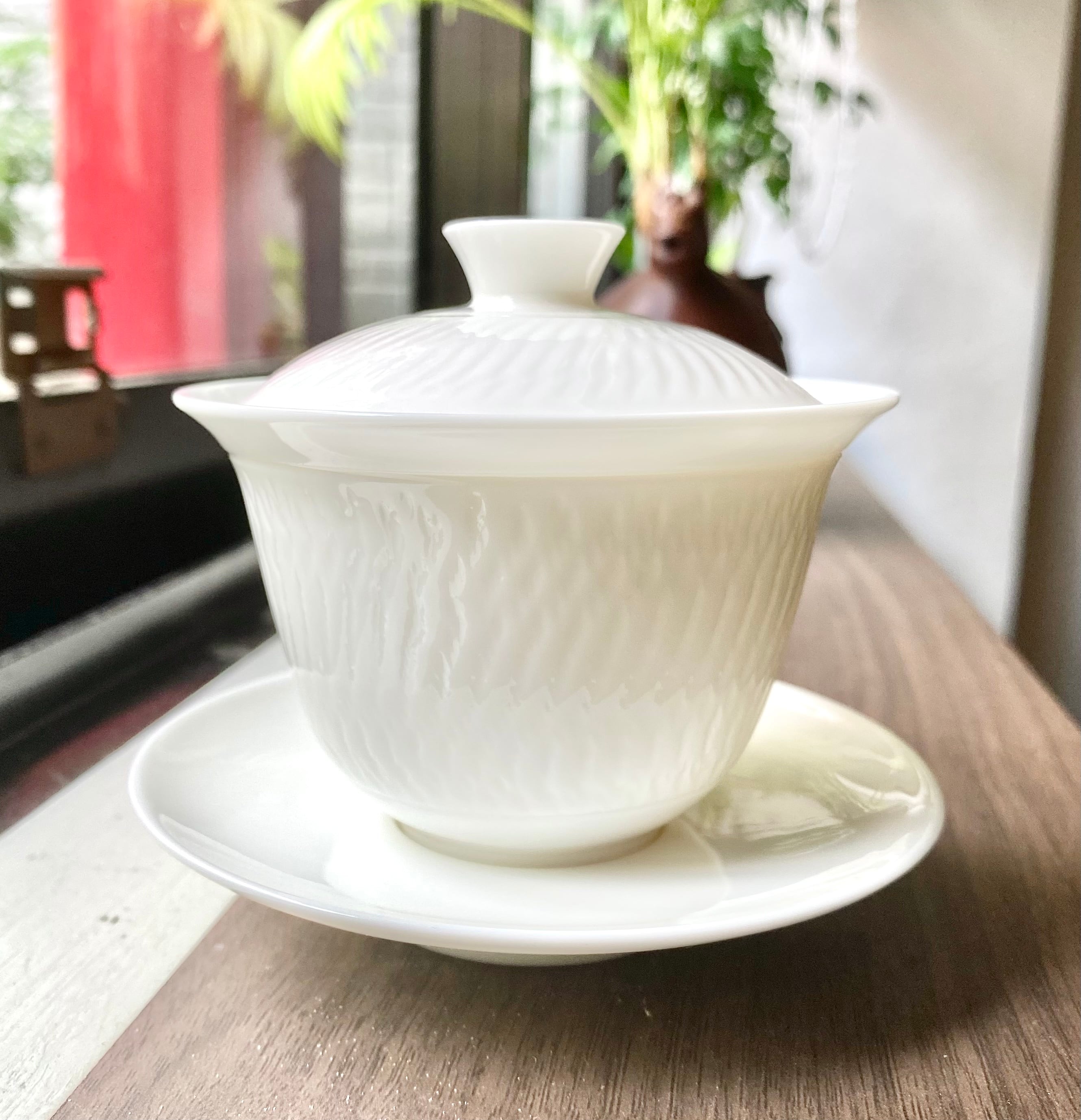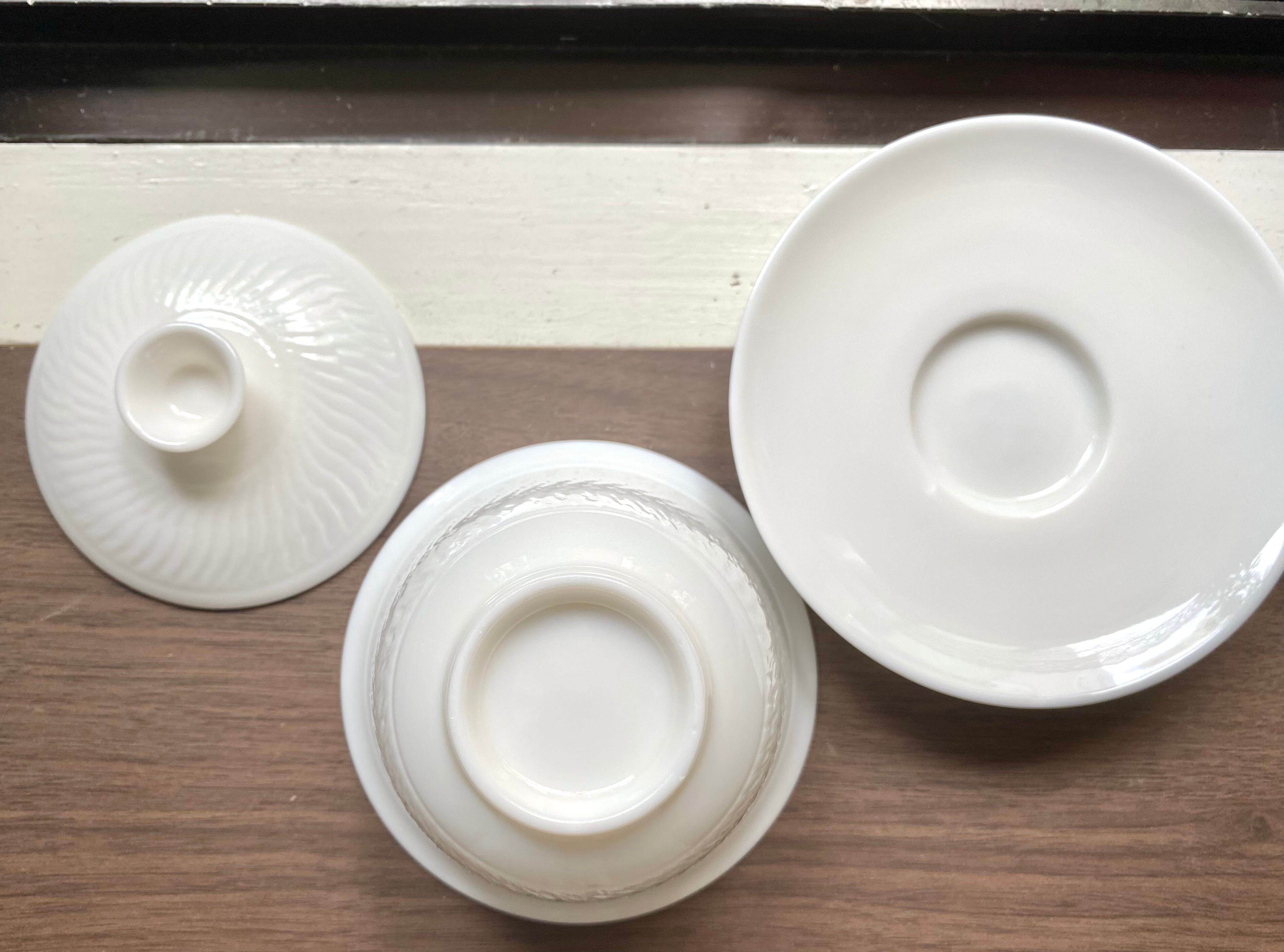 クリーム色に近い白磁のシンプルな蓋碗です。