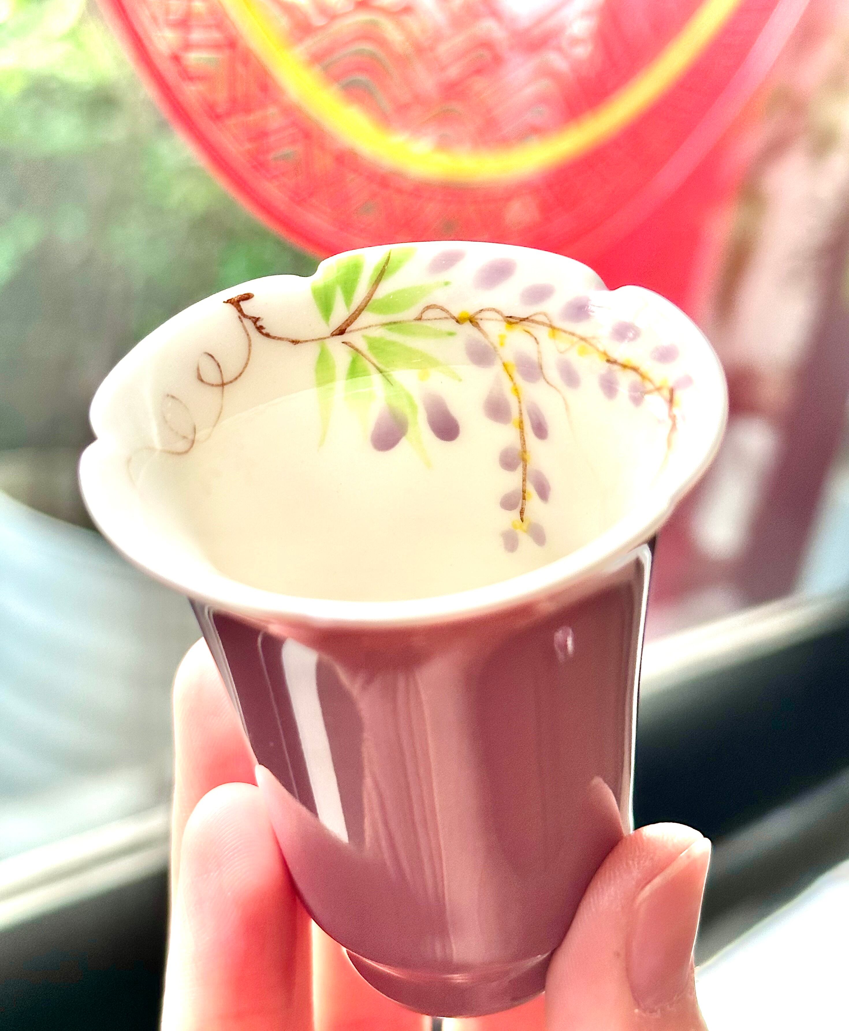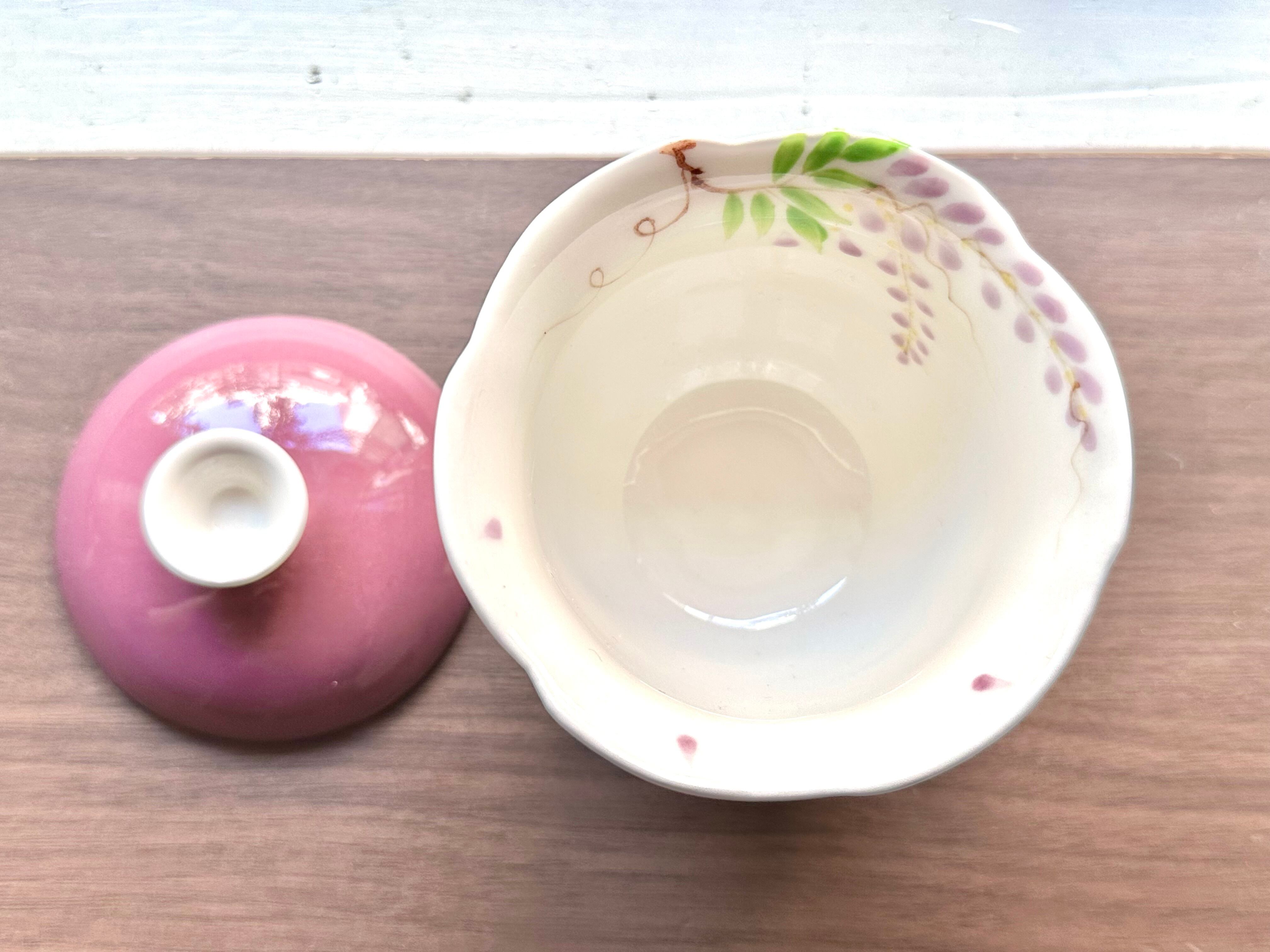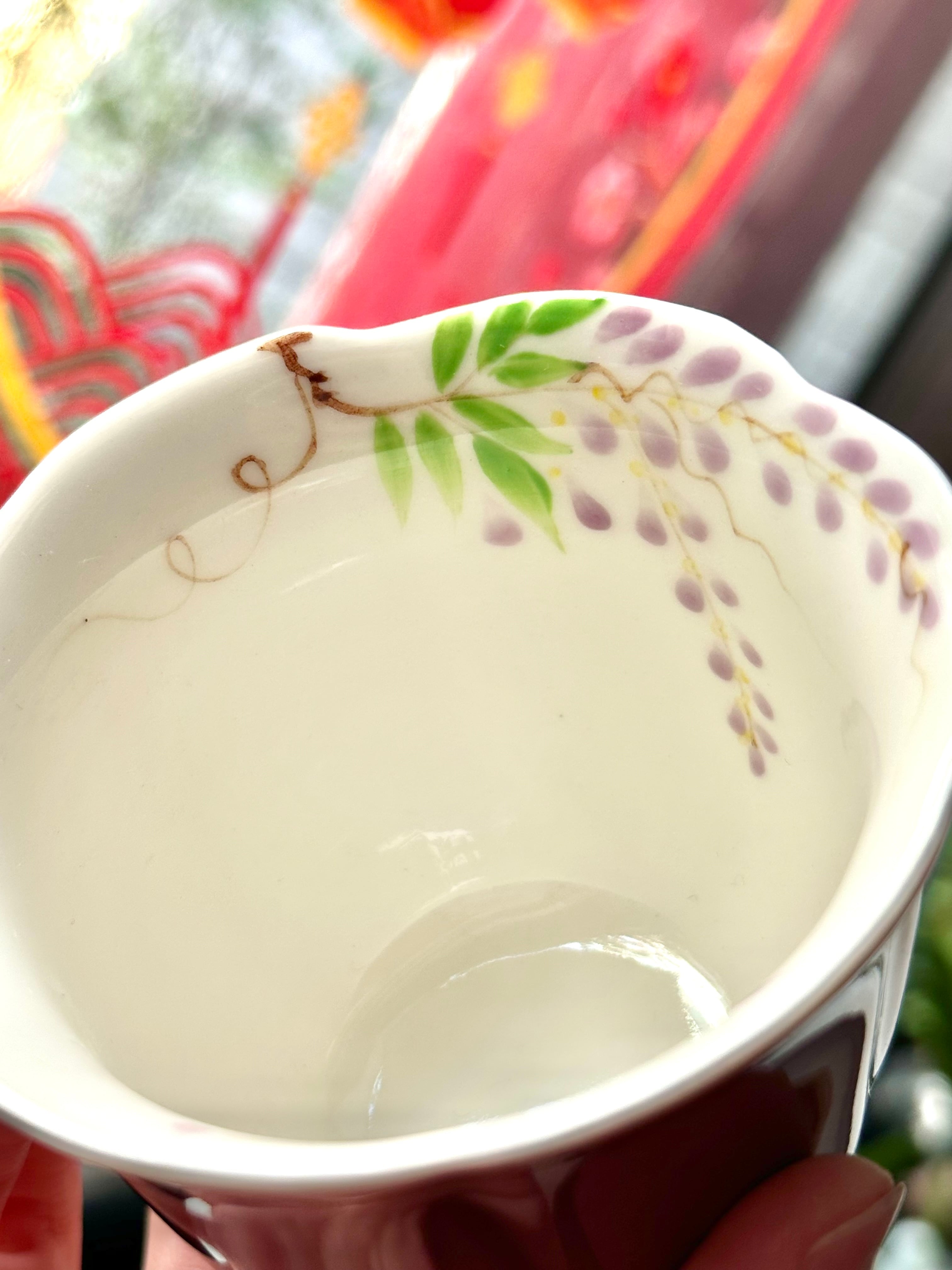 花型の茶器の内側には手描きで一つ一つ藤花が描かれています。