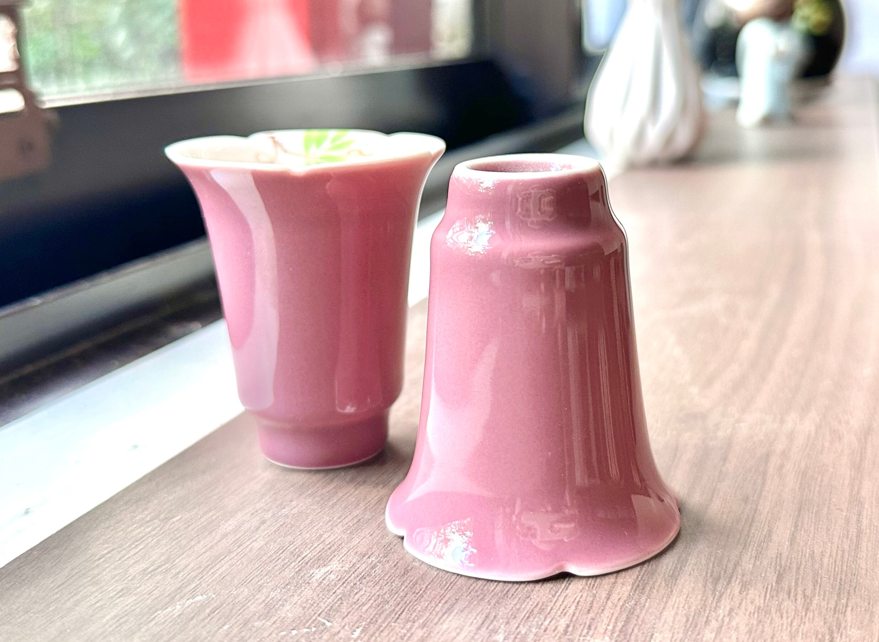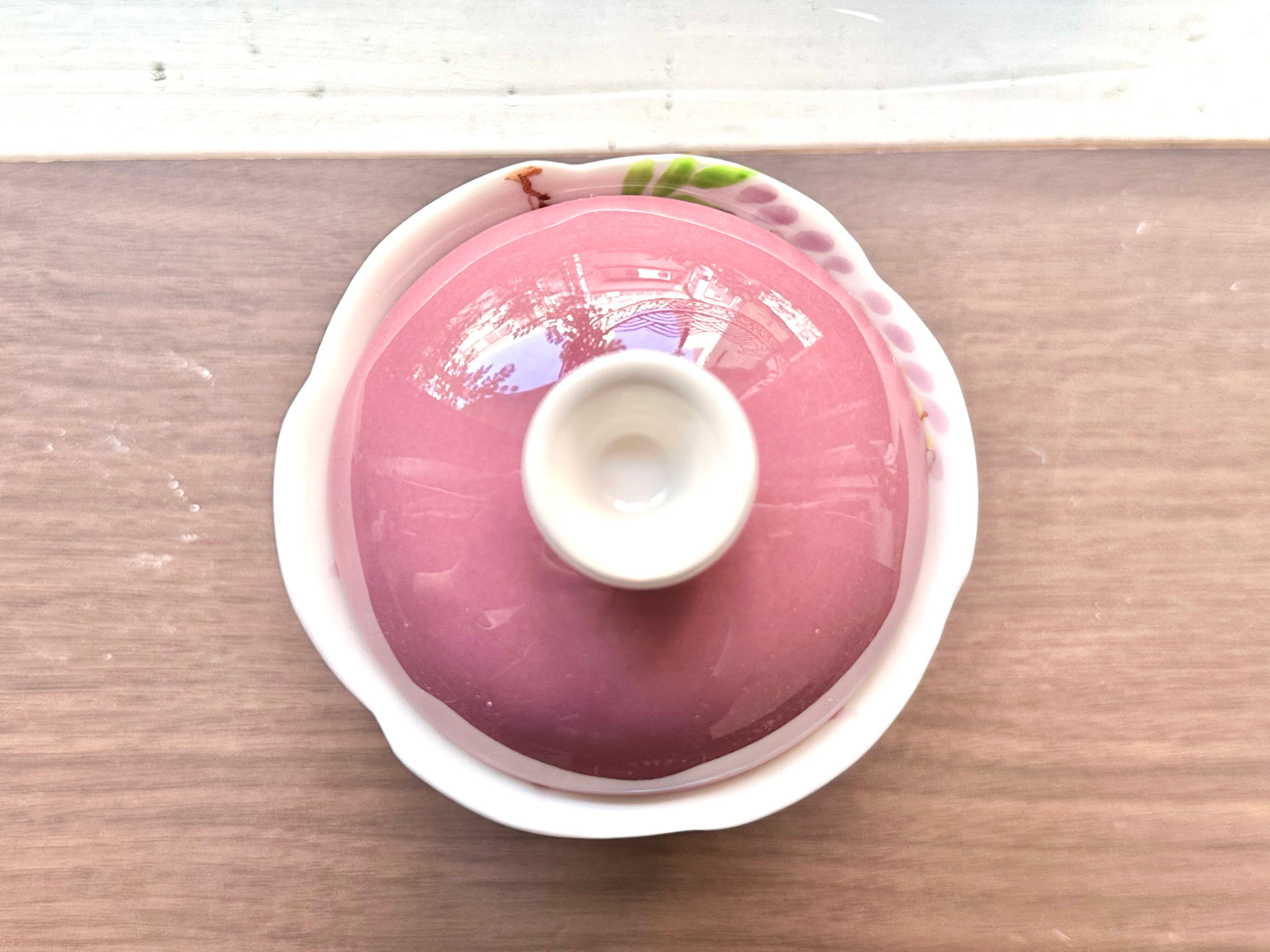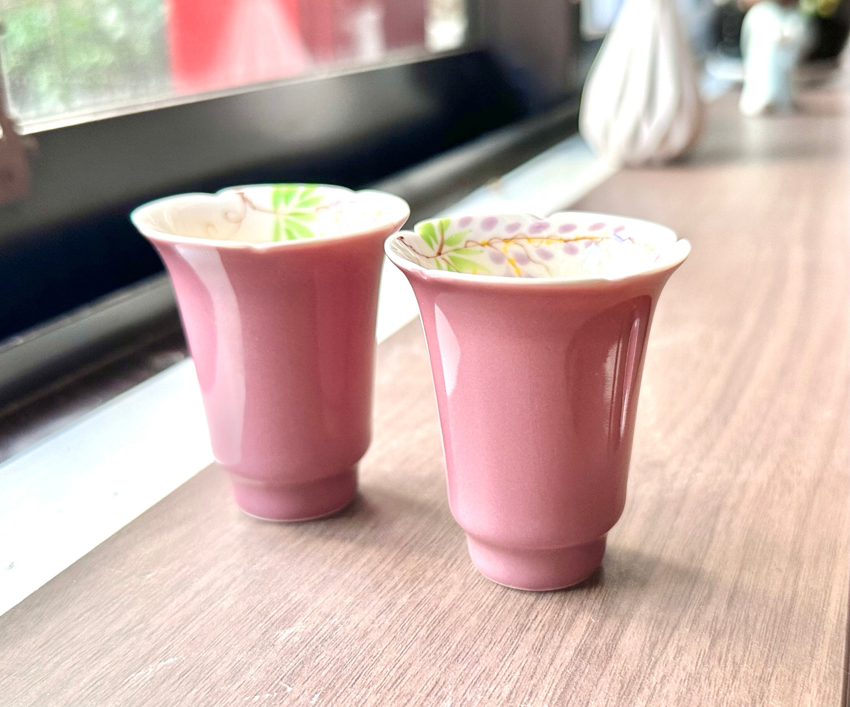 花型の茶器の内側には手描きで一つ一つ藤花が描かれています。