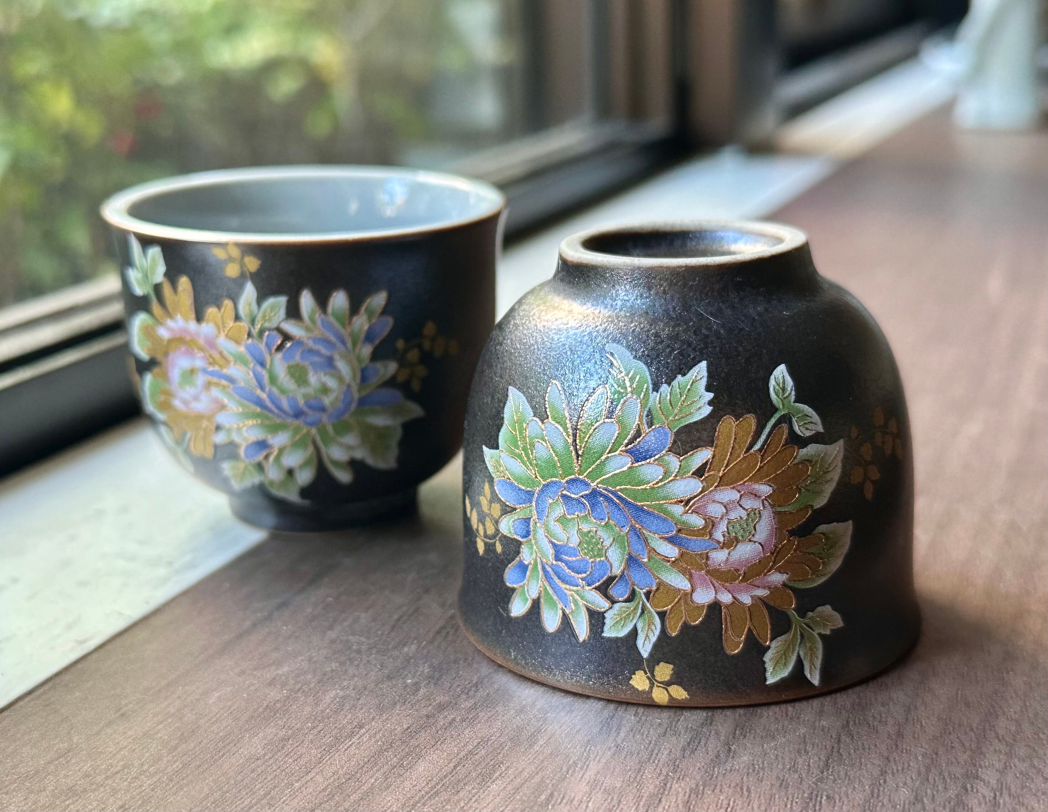 大胆で色鮮やかな牡丹の花が、メインのデザインとなっており、お花の周りはゴールドの釉薬で縁取られているので手で触ると少し立体的な感触を楽しむことができます。