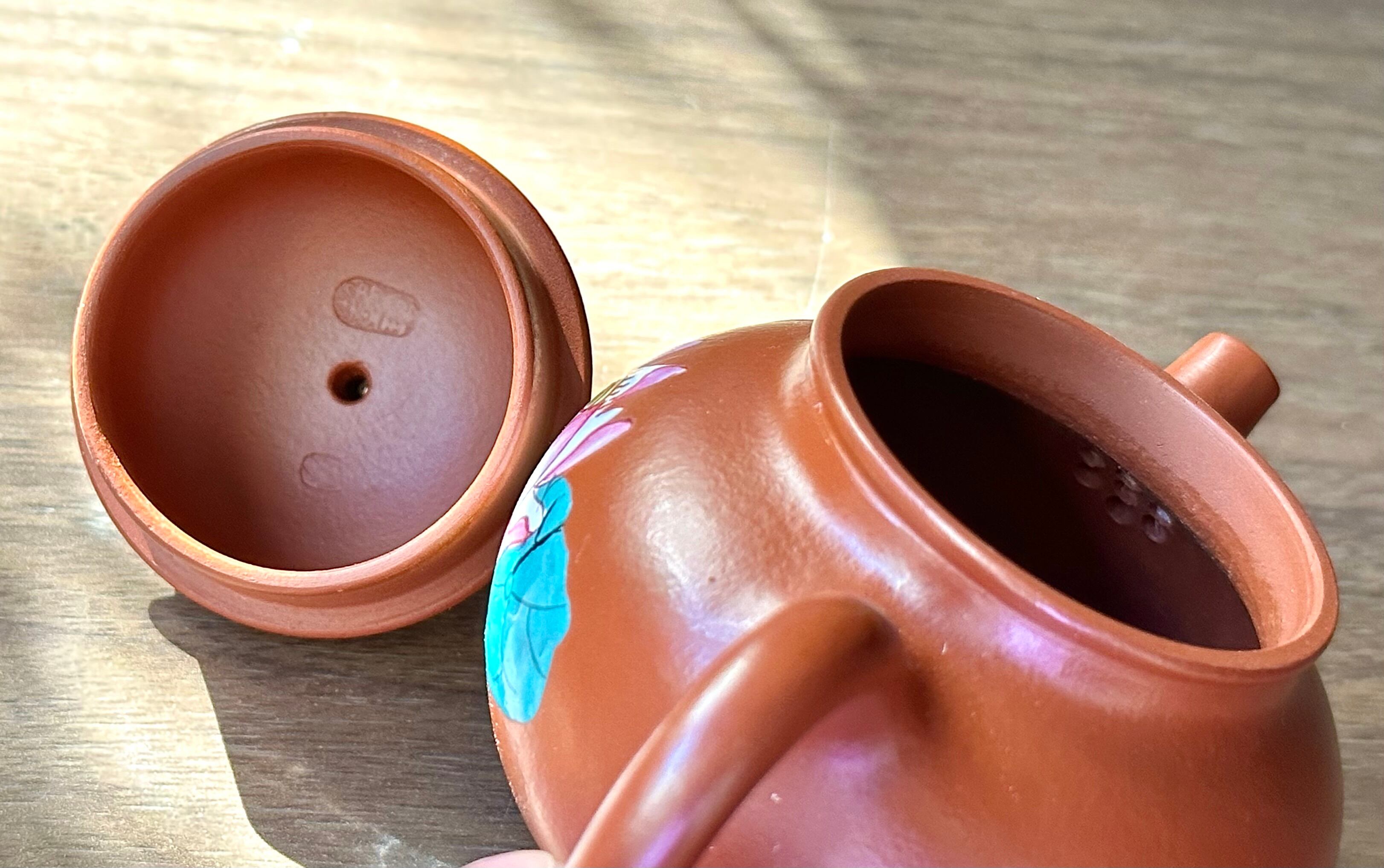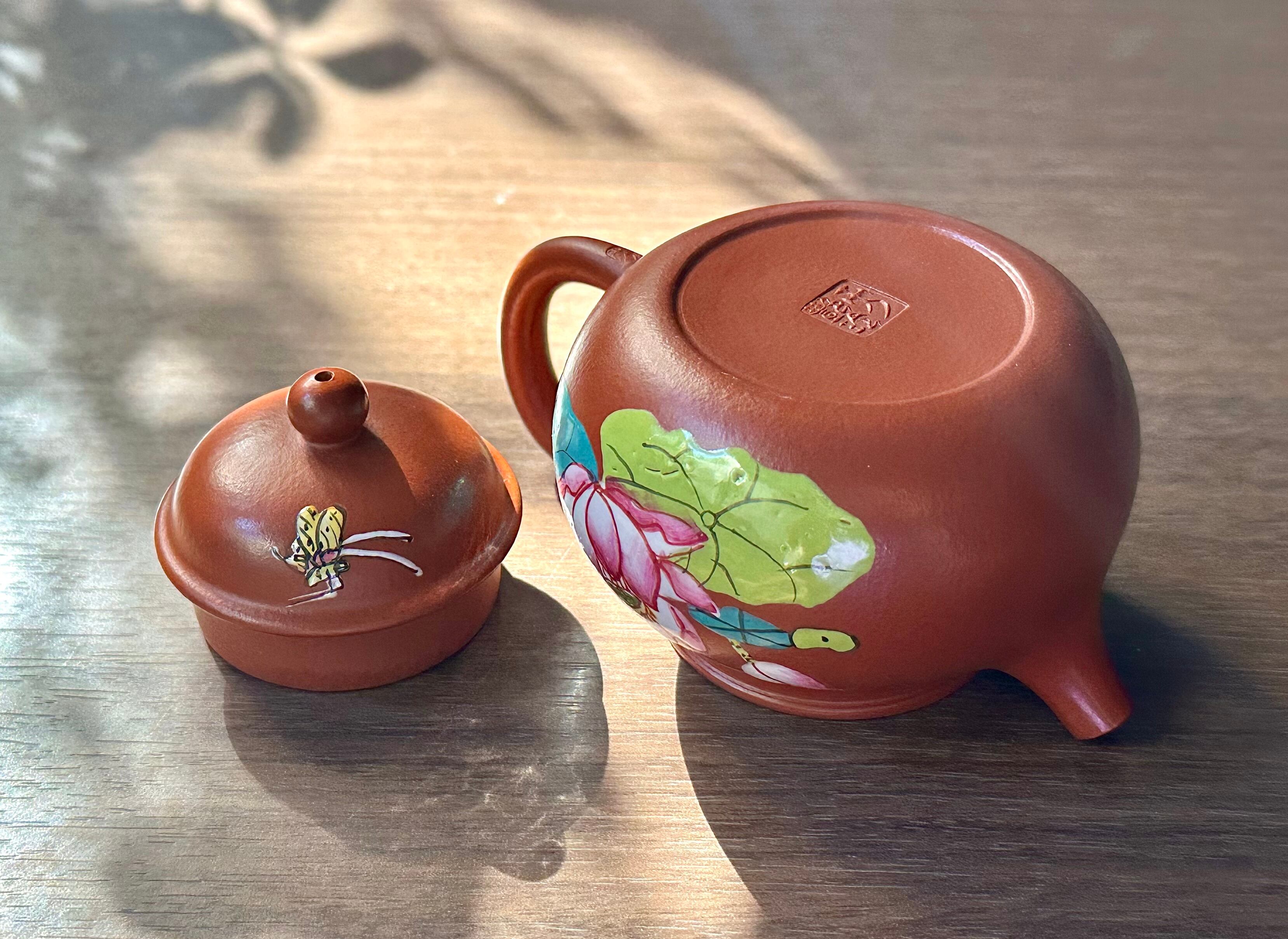 【珐琅彩】とは、ガラスのようなぷっくりとした光沢感が美しい技法を用いて描かれた少し立体的なデザインです。大変難しい技術で紫砂の美しさをより引き立てます。