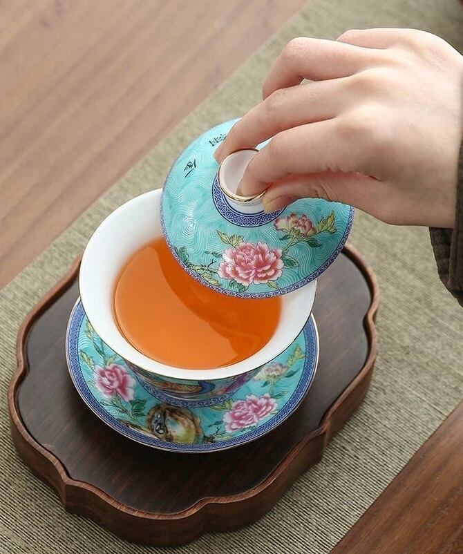 【珐琅彩】とは、ガラスのようなぷっくりとした光沢感が美しい技法を用いて描かれた少し立体的なデザインです。景徳鎮では大変有名は技法。
