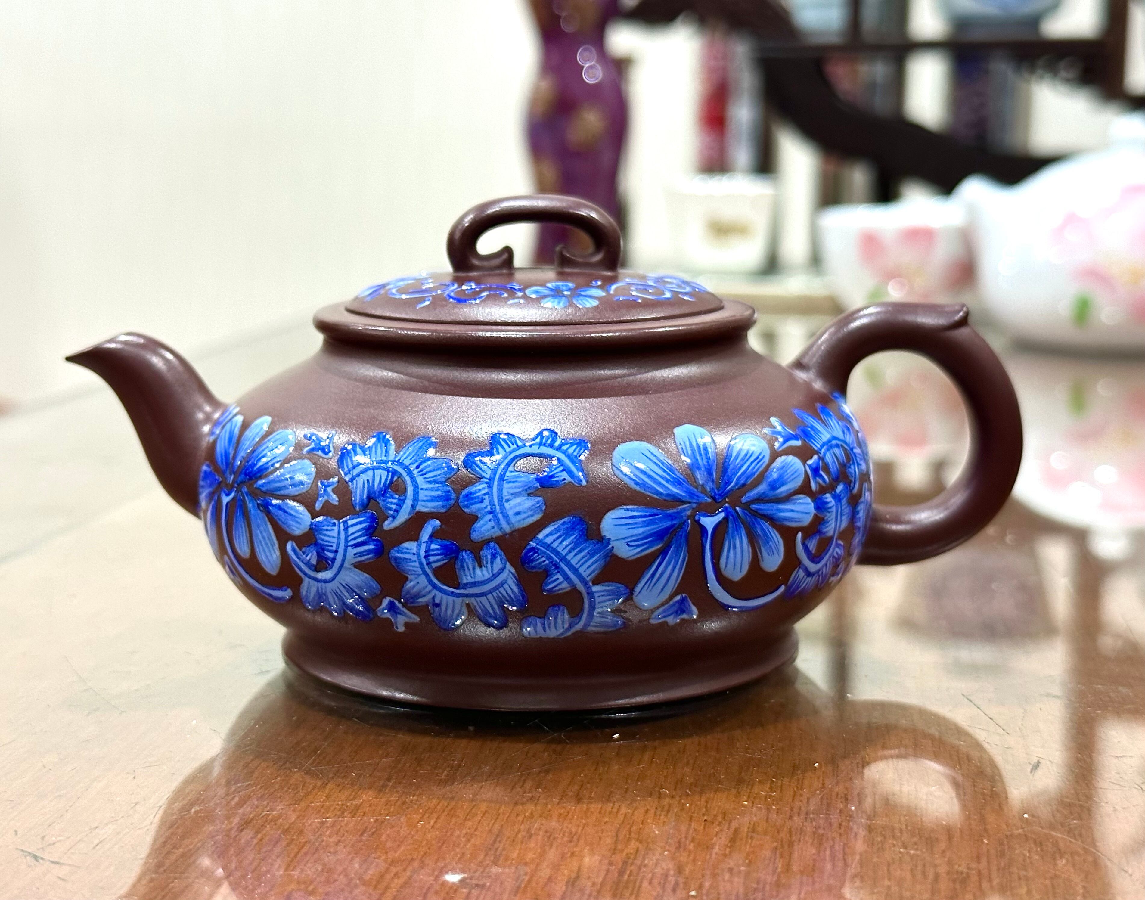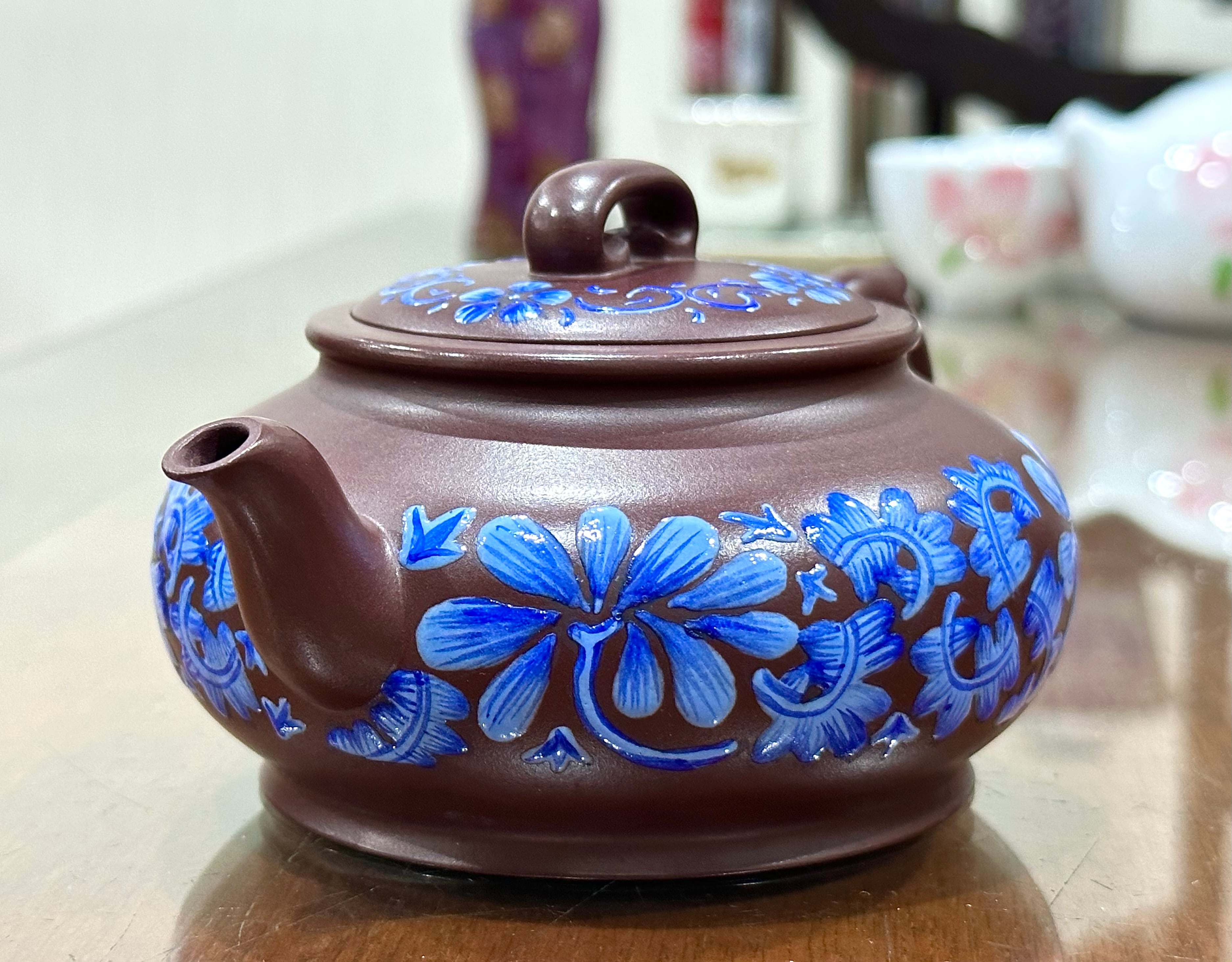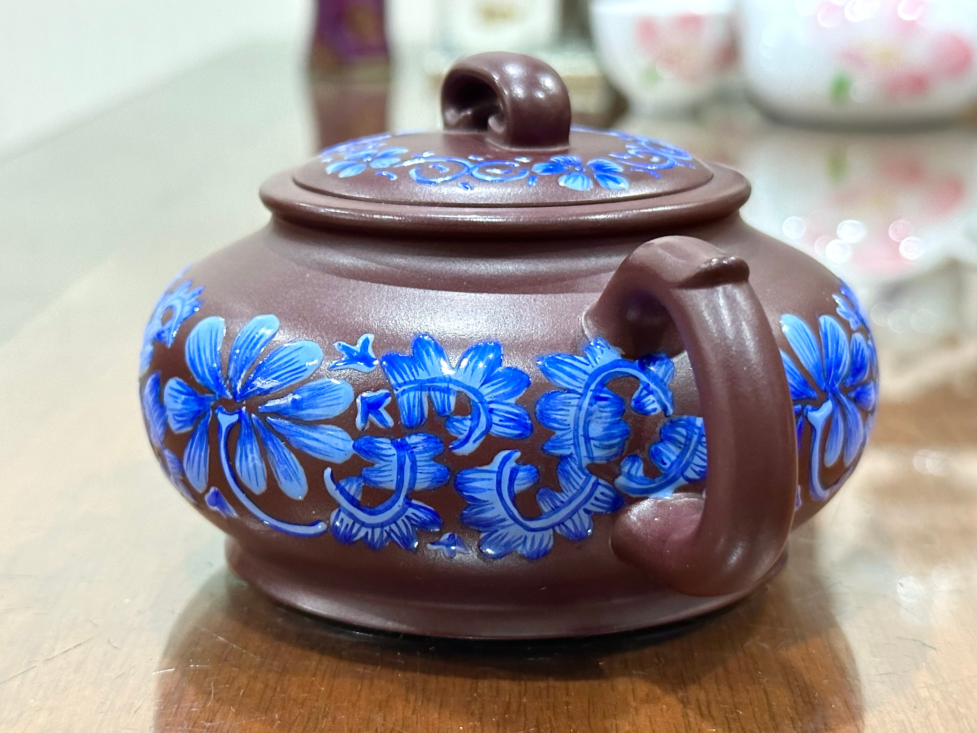 こちらは紫砂の百目紫泥というとめもキメが細かい土を用いていますので通常の紫泥よりも色が少し濃いめで高級感があります。