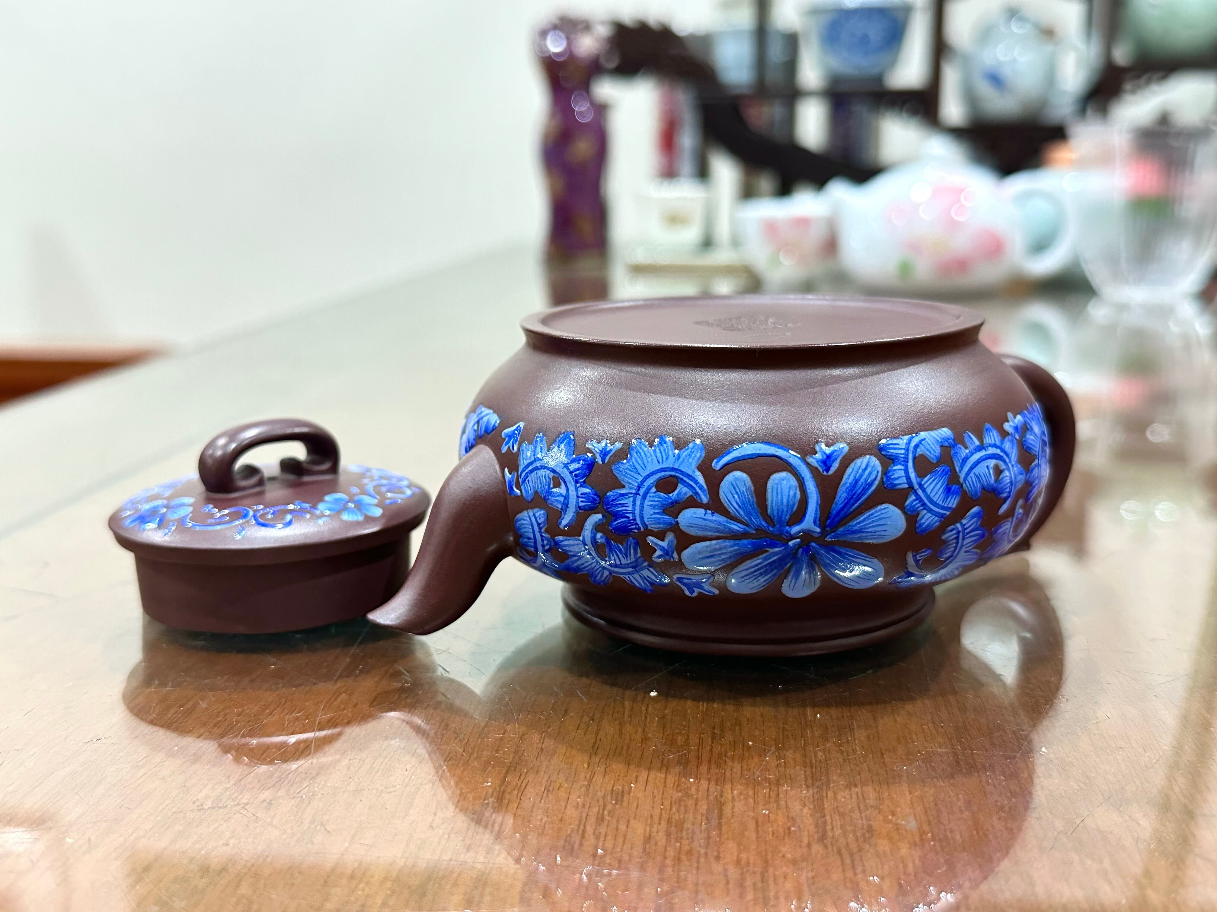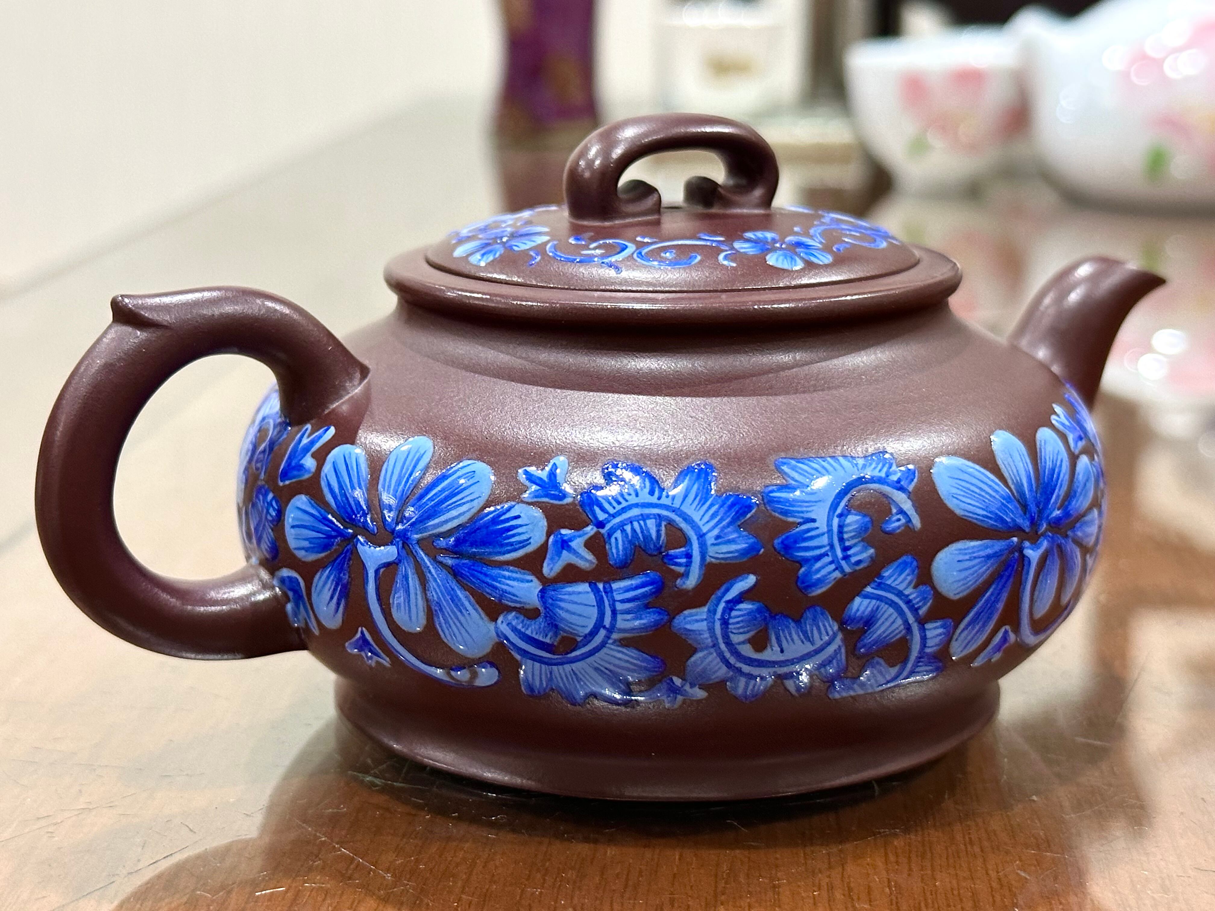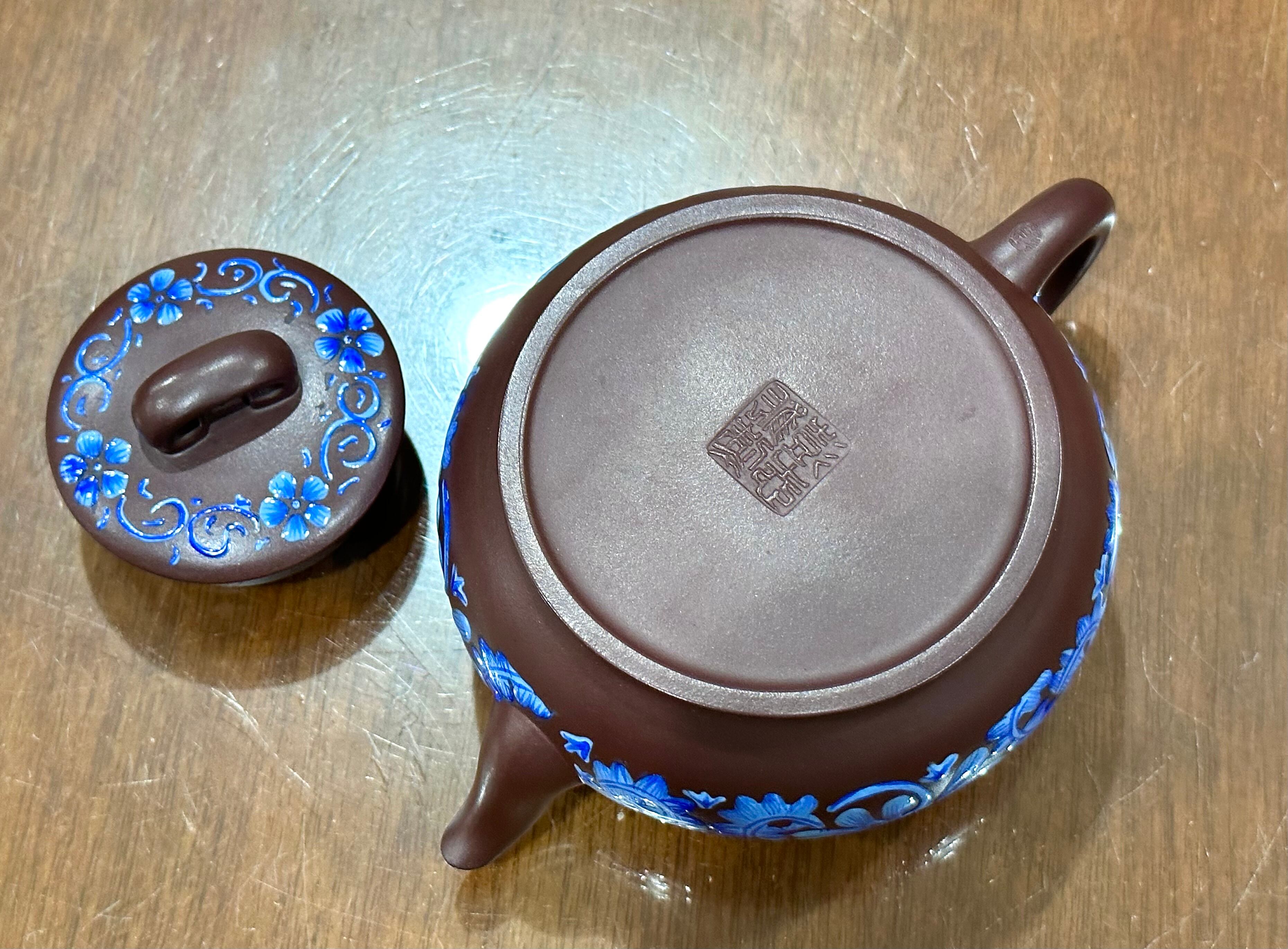 こちらは紫砂の百目紫泥というとめもキメが細かい土を用いていますので通常の紫泥よりも色が少し濃いめで高級感があります。