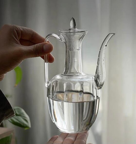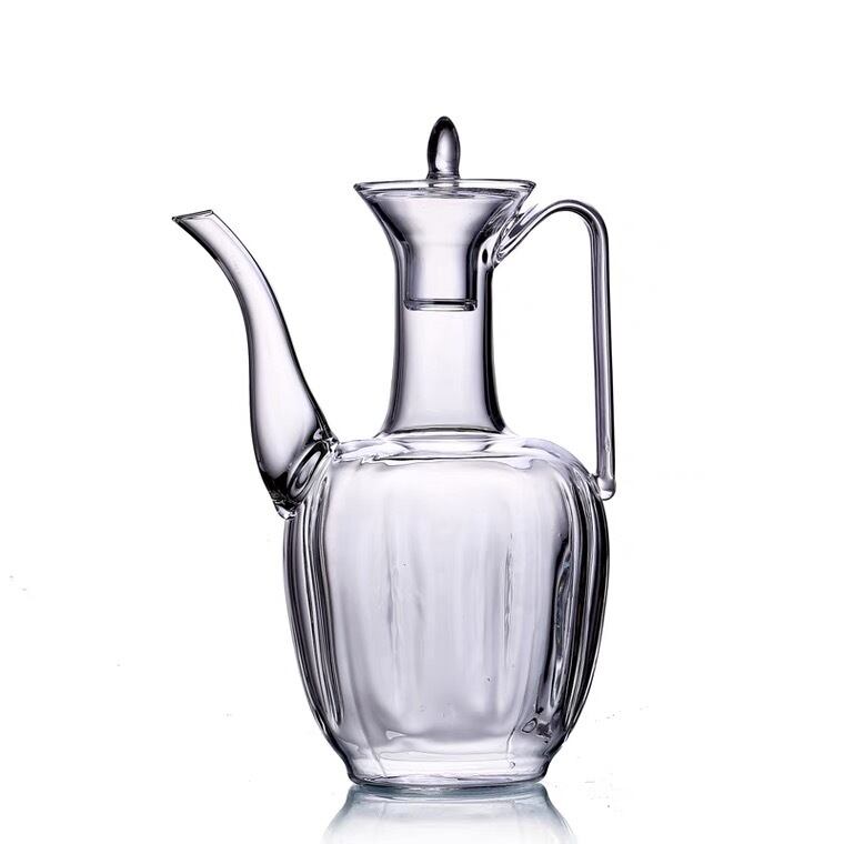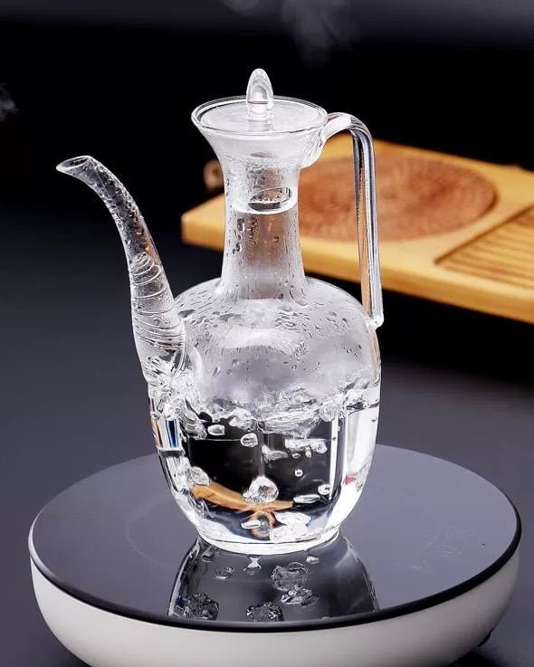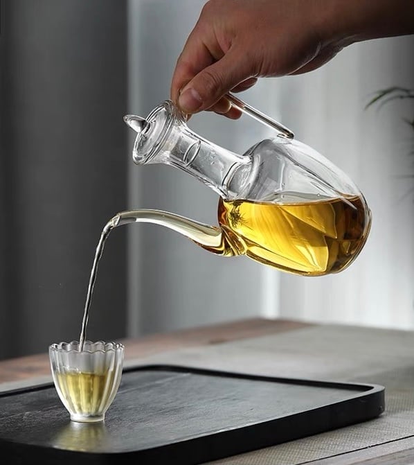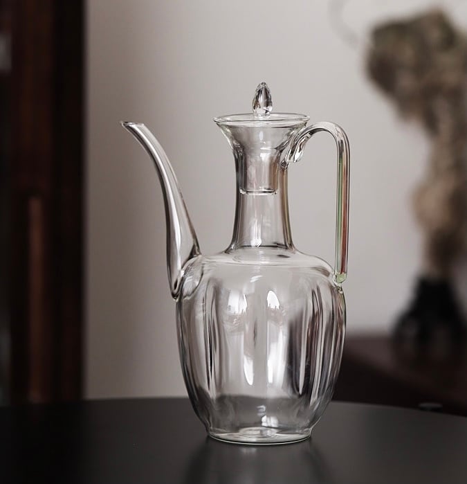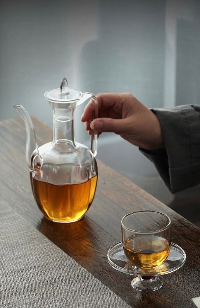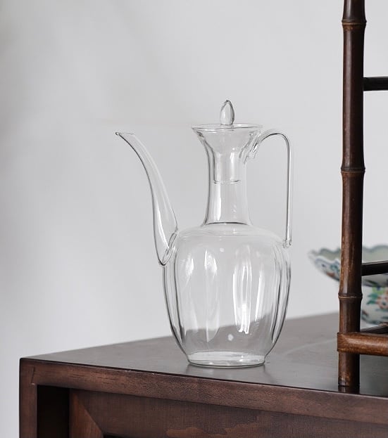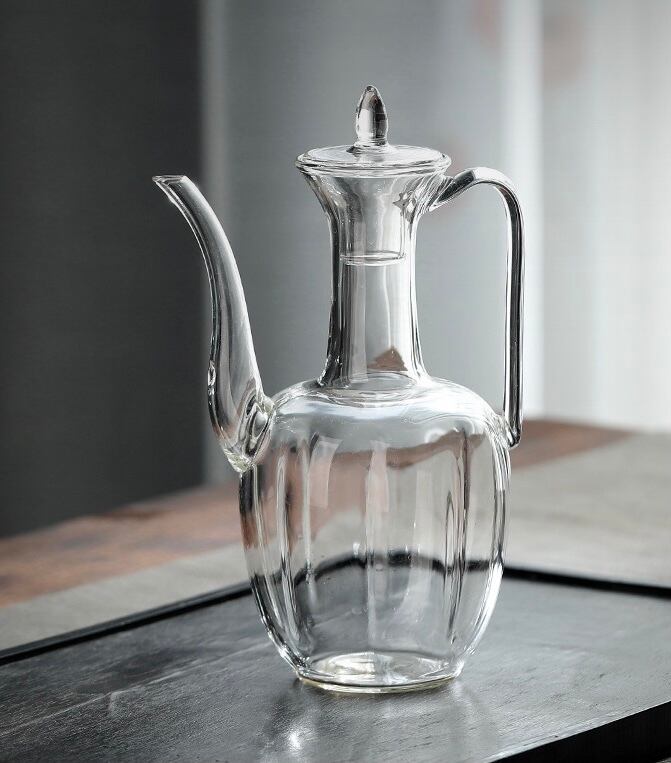 注ぎ口のラインがとても美しいデザインの耐熱ガラス茶壷です。