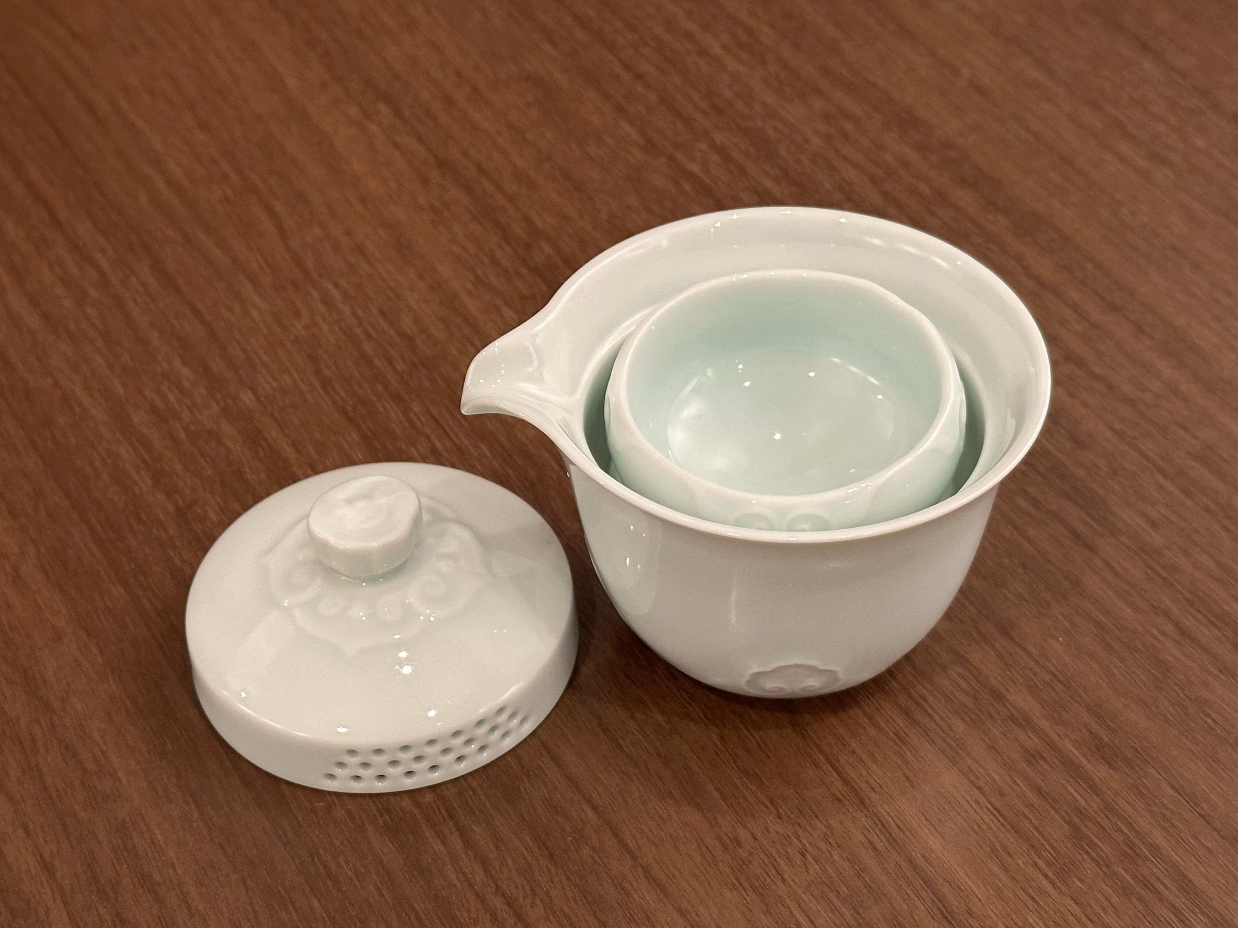 茶杯を茶壷の中に収納できる仕様になっており、場所を取らず、持ち運びにもコンパクトで便利なデザインとなっております。