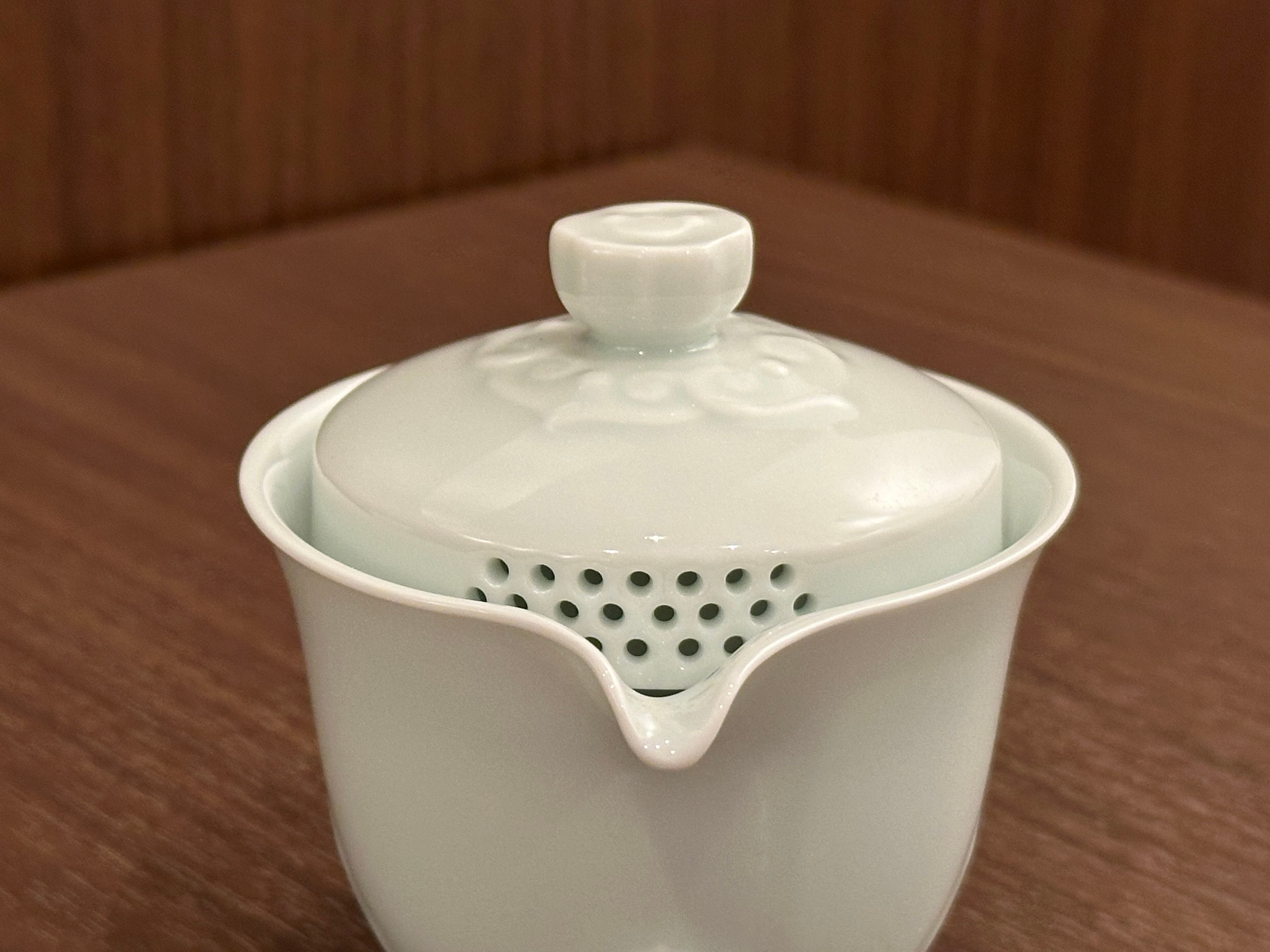茶壷(急須)の形は、蓋碗と急須の中間をとったよう形が特徴です。掴むような感じで茶壷を持ち、茶杯に移して使用します。